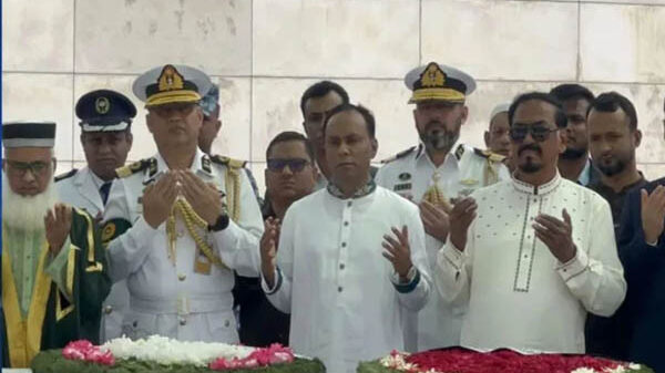 শুক্রবার (১৩ মার্চ) বেলা সাড়ে ১১টার দিকে তারা সেখানে ফাতেহা পাঠ করেন, দোয়া করেন এবং পুষ্পস্তবক অর্পণ করেন। জাতীয় সংসদ সচিবালয়ের কর্মকর্তারা ও কর্মচারীরাও এ সময় উপস্থিত ছিলেন।