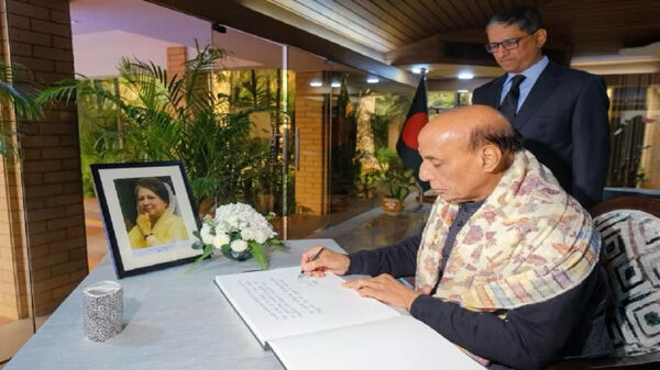 আজ ১ জানুয়ারি বৃহস্পতিবার সকালে ভারতের প্রতিরক্ষামন্ত্রী রাজনাথ সিং দিল্লির বাংলাদেশ হাইকমিশনে যান, যেখানে তিনি বাংলাদেশের সাবেক প্রধানমন্ত্রী ও বিএনপি চেয়ারপারসন বেগম খালেদা জিয়ার মৃত্যুতে শোক প্রকাশ করেছেন। তিনি প্রথমে