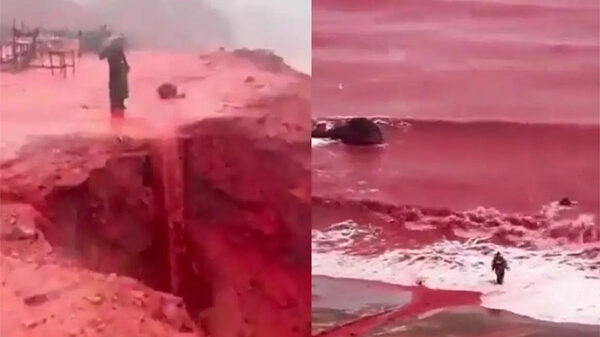 ইরানের হরমুজ দ্বীপে বৃষ্টির পর এক অসাধারণ ও আকর্ষণীয় দৃশ্যের সৃষ্টি হয়েছে। স্বাভাবিকভাবে পাহাড় থেকে ঝরানো воды যখন সমুদ্রে প্রবাহিত হচ্ছে, তখন দেখা যাচ্ছে মাটির রঙ রক্তের মতো লাল হয়ে