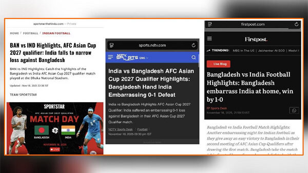 ভারতের বিপক্ষে ২২ বছর পর জয় বাংলা ফুটবল দলের জন্য লজ্জার হার