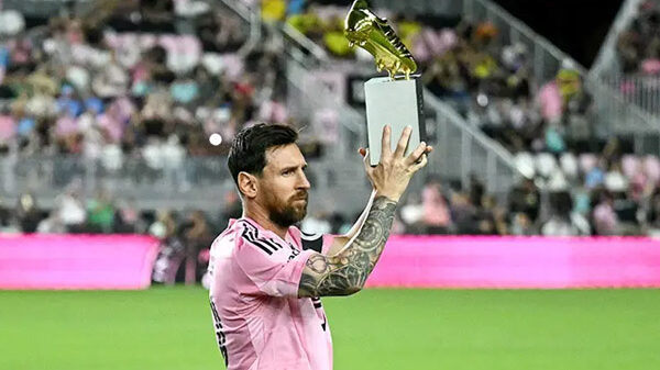 নির্বাচিতভাবে ন্যাশভিলে এসসির বিরুদ্ধে মাঠে নামার আগে এমএলএস লিগের গোল্ডেন বুট পুরস্কার জেতলেন লিওনেল মেসি। চেজ স্টেডিয়ামে তার হাতে এই পুরস্কার তুলে দেন এমএলএসের কমিশনার ডন গারবার। ইন্টার মিয়ামির জার্সিতে