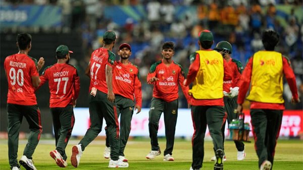 তানজিদ হাসানের দুর্দান্ত হাফ সেঞ্চুরির জোরে প্রথম ১০ ওভারে বাংলাদেশ ৮৭ রান তুলেছিলো, তবে এরপর ব্যাটিংয়ে তারা ঠিকঠাক করার রাখতে পারেনি। এই কারণে ভালো শুরু পাবার পরও ১৫৪ রানে আউট