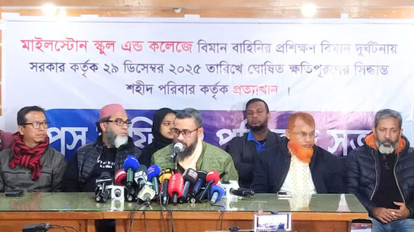রাজধানীর উত্তরার দিয়াবাড়ীতে অবস্থিত মাইলস্টোন স্কুল অ্যান্ড কলেজ ক্যাম্পাসে বিমানবাহিনীর প্রশিক্ষণ বিমান বিধ্বস্তের ঘটনার ক্ষতিগ্রস্ত পরিবারগুলো তাদের ক্ষোভ ও অসন্তোষ প্রকাশ করে পাঁচ দফা দাবি জানিয়েছেন। গত বছরের ২১ জুলাই