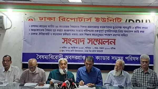 সামাজিক যোগাযোগ মাধ্যমে জনপ্রশাসন বিষয়ে মতামত প্রকাশের কারণে আন্তঃক্যাডার বৈষম্য নিরসন পর্ষদভুক্ত ২৫ ক্যাডারের ১৪ জন কর্মকর্তাকে চাকরিচ্যুত করার অভিযোগ উঠেছে। এই অভিযোগটি জানিয়েছে বৈষম্যবিরোধী অবসরপ্রাপ্ত ২৫ ক্যাডার সমন্বয় পরিষদ।