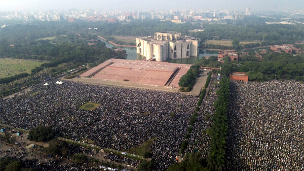 সংসদ ভবন এলাকা এখন মানুষের ঢলনে মোড়া। এখানে থেকে যতদূর চোখ যেতে দেখা যাচ্ছে, শুধু মানুষই মানুষ। তারা সবাই এসেছে নেত্রী খালেদা জিয়াকে শেষ বিদায় জানাতে। জীবনের শেষ মুহূর্তে তিনি