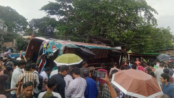 ফেনীর দাগনভূঞা উপজেলার সিলোনিয়া বাজারসংলগ্ন লাকি রোডে একটি বাস নিয়ন্ত্রণ হারিয়ে উল্টে গেছে। এই দুর্ঘটনায় দুই নারীসহ মোট তিনজন নিহত হন, পাশাপাশি অন্তত আটজন আহত হন। ঘটনাটি ঘটেছে আজ বৃহস্পতিবার