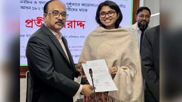 ঢাকা-৯ আসনের স্বতন্ত্র প্রার্থী ডা. তাসনিম জারা ফুটবল প্রতীক পেয়েছেন। বুধবার (২১ জানুয়ারি) দুপুরে ঢাকা বিভাগীয় কার্যালয় থেকে তিনি এই প্রতীক সংগ্রহ করেন। এসময় তিনি বলেন, আমি গত কয়েকদিন ধরে