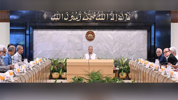 জাতীয় ঐকমত্য কমিশনের প্রণীত জুলাই সনদ এবং তার বাস্তবায়ন সংক্রান্ত বিষয়ে একটি জরুরি উপদেষ্টা পরিষদের সভা অনুষ্ঠিত হয়েছে। এই সভার সভাপতিত্ব করেন প্রধান উপদেষ্টা ড. মুহাম্মদ ইউনূস। সভাটি সোমবার (৩