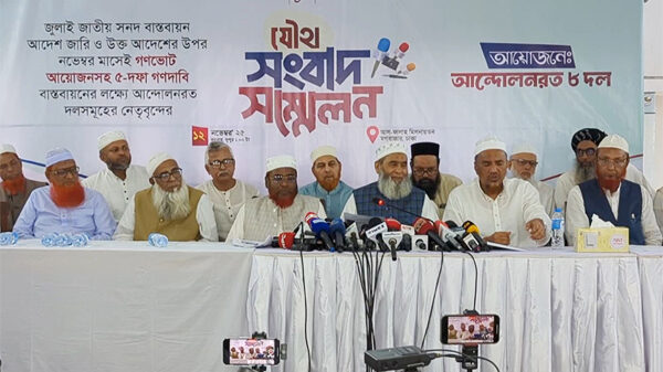 আট দলের নতুন কর্মসূচি ঘোষণা: জুলাই সনদ ও নির্বাচনের দাবি