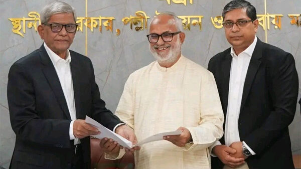 খুলনা সিটি কর্পোরেশনের প্রশাসক হিসেবে দায়িত্ব গ্রহণ করেছেন মহানগর বিএনপি’র সাবেক সভাপতি ও দুই আসনের সাবেক সংসদ সদস্য নজরুল ইসলাম মঞ্জু। মঙ্গলবার (২৪ ফেব্রুয়ারি) সকালে রাজধানীর সচিবালয়ে স্থানীয় সরকার মন্ত্রী