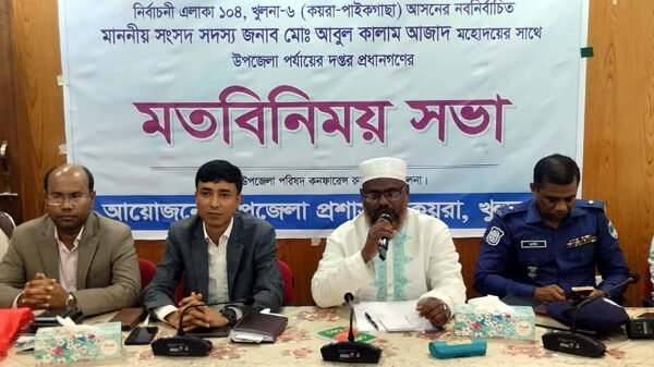 উপকূলীয় জনপদ কয়রা ও পাইকগাছার টেকসই উন্নয়ন ও জনসেবাকে আরও কার্যকরভাবে বাস্তবায়ন করতে সরকারী কর্মকর্তাদের একত্রে কাজ করার আহ্বান জানিয়েছেন খুলনা-৬ সংসদ সদস্য মাওলানা আবুল কালাম আজাদ। গতকাল মঙ্গলবার বিকেলে