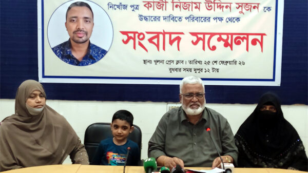 খুলনা-২ আসনের সাবেক সংসদ সদস্য ও মহানগর আওয়ামী লীগের সাবেক সাধারণ সম্পাদক মিজানুর রহমান মিজানের জামাতা ব্যবসায়ী কাজী নিজাম উদ্দিন সুজন গত বুধবার তারাবির নামাজ আদায় করতে গিয়ে নিখোঁজ হয়ে