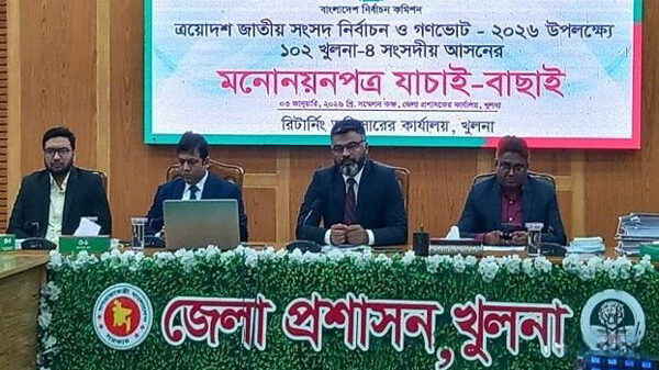 খুলনা-৪ আসনে মনোনয়নপত্র যাচাই-বাছাই কার্যক্রম আজ সম্পন্ন হয়েছে। চতুর্থ দিনের এই পর্বে মোট চারজন প্রার্থীর মনোনয়ন বৈধ ঘোষণা করা হয়েছে। তবে একই সঙ্গে এক স্বতন্ত্র প্রার্থীর মনোনয়ন বাতিল করা হয়।