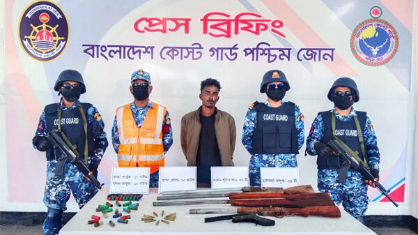 সুন্দরবনের এক দুষ্চর্ষ ডাকাত সমিতির সদস্যকে অস্ত্র ও গোলাবারুদসহ কোস্ট গার্ডের অভিযানে আটক করা হয়েছে। আজ শনিবার (২১ ফেব্রুয়ারি) দুপুরে কোস্ট গার্ড মিডিয়া কর্মকর্তা লেফটেন্যান্ট কমান্ডার সিয়াম উল- হকের তরফ