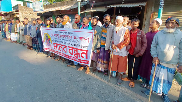 বাগেরহাটের মোরেলগঞ্জ উপজেলার নিশানবাড়িয়া ইউনিয়নে এলাকাবাসি মঙ্গলবার এক মানববন্ধন ও প্রতিবাদ সমাবেশ করেছে, যাতে তারা দাবি করেন যে, স্থানীয় কিছু ব্যক্তি বেআইনি ভাবে অভিযোগ এনে সাধারণ অসহায় মানুষকে হয়রানি করছে।