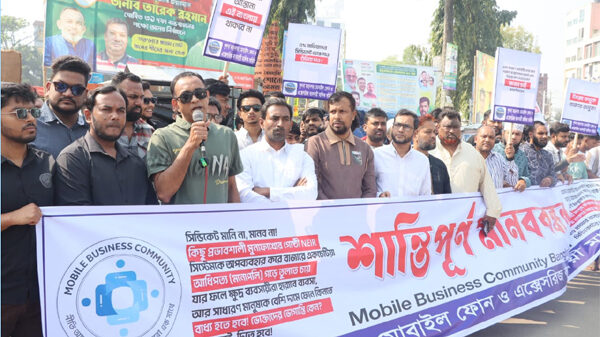 খুলনায় মোবাইল হ্যান্ডসেটের বাজারে সিন্ডিকেট গঠনের চেষ্টা রুখতে ব্যবসায়ীরা সামগ্রিকভাবে সব মোবাইল মার্কেট বন্ধ করে দিয়েছেন। আজ সোমবার (২৪ নভেম্বর) সকাল থেকে নগরীর গুরুত্বপূর্ণ শিববাড়ি মোড়ে ব্যবসায়ীরা মানববন্ধন করেছেন। এই