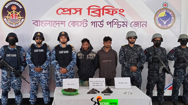 খুলনা coast guard এর অভিযানে দুই শীর্ষ সন্ত্রাসীকে আটক করা হয়েছে। এই অভিযানে বিদেশি অস্ত্র, তাজা গুলি ও বিপুল পরিমাণ মাদক উদ্ধার করা হয়। সোমবার (১৯ জানুয়ারি) সকাল থেকে চালানো
