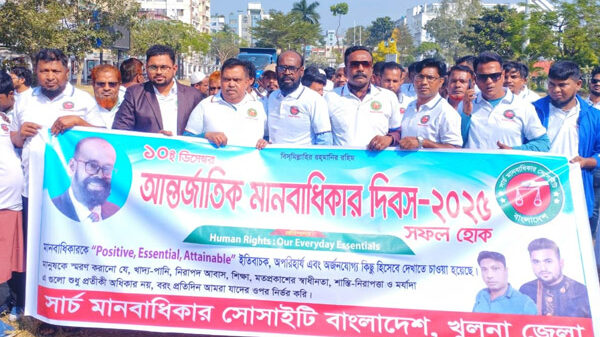 খুলনায় যথাযোগ্য মর্যাদা ও উৎসবমুখর পরিবেশে ৭৮তম আন্তর্জাতিক মানবাধিকার দিবস উদ্যাপন করা হয়েছে। মুক্তিযুদ্ধের স্মৃতি ও মানবাধিকার রক্ষার গুরুত্ব তুলে ধরে এই দিনটি পালিত হয়, যার মাধ্যমে মানবাধিকার জনগণের মৌলিক
