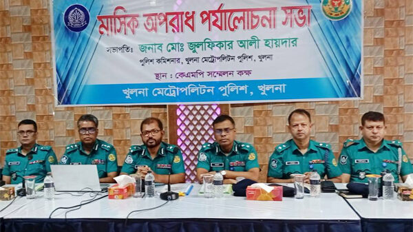 খুলনা মেট্রোপলিটন পুলিশের (কেএমপি) মাসিক অপরাধ পর্যালোচনা সভা বৃহস্পতিবার সকাল সাড়ে ৯টায় নগরীর বয়রাস্থ পুলিশ লাইন্স লাউঞ্জ-২ এ অনুষ্ঠিত হয়। এই সভায় সভাপতিত্ব করেন খুলনা মেট্রোপলিটন পুলিশ কমিশনার মোঃ জুলফিকার