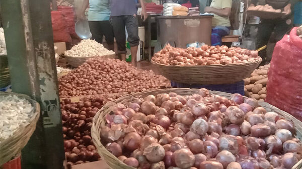 সোমবার দুপুরে সাতক্ষীরার সুলতানপুর বড়বাজারের পাইকারি পেঁয়াজের আড়ৎ ঘুরে দেখা যায়, দেশি পেঁয়াজের বস্তা কাটা হচ্ছে ৬৫ থেকে ৬৬ টাকা, আর মাটিতে ঢেলে বিক্রি হচ্ছে ৬৭ টাকা কেজিতে। লাল জাতের