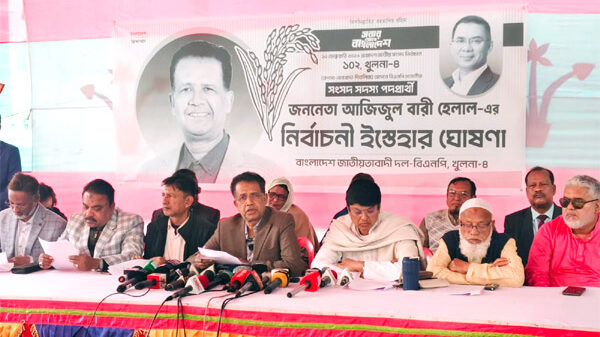ত্রয়োদশ জাতীয় সংসদ নির্বাচন-২০২৬ কে সামনে রেখে খুলনা-৪ আসনের (রূপসা, তেরখাদা ও দিঘলিয়া) বিএনপি মনোনীত সংসদ সদস্য পদপ্রার্থী আজিজুল বারী হেলাল তার নির্বাচনী ইশতেহার ঘোষণা করেছেন। শনিবার, ২৪ জানুয়ারি এই